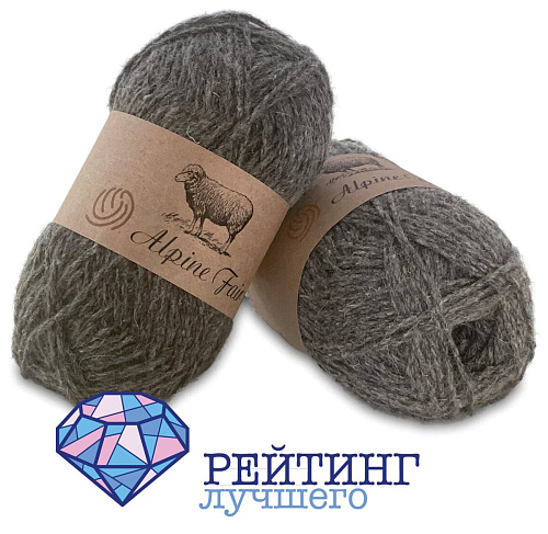Пряжа для ручного вязания российского бренда Alpine Fair доступна для покупки в двух цветах: темно – сером и молочном. В комплекте идет сразу два мотка, чтобы могло хватить на большое изделие. Однако мы все также рекомендуем сохранять бирку от ниток для покупки таких же в случае нехватки. Для этого клубка рекомендованы крючки и спицы размерами три – четыре. В состав входит овечья шерсть на восемьдесят процентов и двадцать – акриловое волокно. Такой материал будет надежно сохранять тепло в холодное время года, он легкий и хорошо тянется. Однако он может деформироваться или скатываться при ненадлежащем уходе. Этому препятствует и добавление синтетического волокна в состав. Оно же и снижает риск возникновения аллергических реакций. Весит моток сто граммов при длине нитей 125 метров, что свидетельствует о средней толщине волокна. Два сложения, окрас однотонный. Покупатели оставляют положительные отзывы о товаре. Отмечают, что у него хорошее соотношение цены и качества, из него получаются хорошие носки и удается штопка. Также указывают, что присутствует небольшое покалывание, и после стирки все равно остается небольшой запах овечки.