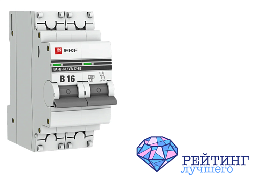 Двухполюсной выключатель ВА 47-63 2P (B) 4,5kA фирмы EKF предназначен для управления участками электросети. Кроме того, он защитит от короткого замыкания и перегрузки вашу квартиру при использовании сразу нескольких бытовых приборов, потребляющих большое количество энергии. Расцепление по типу В сработает при превышении значений в три – пять раз. Значения номинального тока: 6, 10, 16, 20, 25, 32, 40 и 50 А. Автомат модульный, поэтому его можно компоновать с другими в щитке для удобства. Ток, который будет отключен при коротком замыкании с сохранением рабочего состояния равен 4 500 А. На передней стенке расположен рычаг для ручного управления, монтировать можно на DIN - рейку как и большинство таких приборов. Класс защиты корпуса IP20 предусматривает непроницаемость для твердых частиц размерами пятьдесят микрон и отсутствие влагозащищенности. Покупатели высоко оценили товар, отметили хорошую работоспособность и отсутствие недостатков.