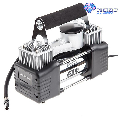 Поршневой автокомпрессор имеет хорошую производительность 75 литров в минуту, является невероятно шустрым и мощным устройством, которое поможет вам накачать шины за считанные секунды. Имеет длинный воздушный шланг (4 метра) и кабель питания длинной 3 метра. Обладает сниженным уровнем шума, чем и нравится потребителям. Аккуратный внешний вид, дизайн и удобная сумка дополняют общее положительное впечатление от данного устройства. Мощность данного компрессора заявлена на 300 Вт, максимальное давление составит 10 атм. Подключается к клеммам аккумулятора, имеет металлический прочный корпус. Аналоговый манометр для многих будет удобным, вес устройства составляет 3,2 килограмма, с ним справится даже новичок.