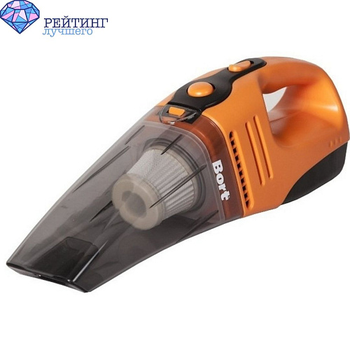 Это устройство является одним из самых популярных среди потребителей. Он обладает очень высокой маневренностью и имеет эргономичную ручку для удобного захвата. Он легкий (800 г), поэтому его можно использовать в течение длительного времени, не испытывая усталости. Работает Bort BVC-95 от прикуривателя, а потому оснащен 2,8-метровым кабелем, и комплектуется щелевой и пылевой щетками. При этом наличие на корпусе отсека для хранения шнура делает инструмент еще более компактным. Вы сможете хранить его в абсолютно любом месте, например, в бардачке, чтобы иметь возможность навести порядок в салоне в нужный момент. А все потому что он может собирать жидкости.