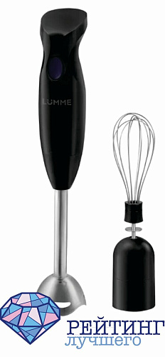 Начнем мы наш рейтинг с простой модели погружного блендера LU-1836 бренда LUMME. Он представлен в двух цветах: фиолетовый чароит и белый. Погружная часть сделана из металла, разрешенного к использованию с пищевыми продуктами, поэтому он не подвержен коррозии и прослужит длительное время. В комплект входит венчик для взбивания, что очень пригодится любителям приготовить какой-нибудь десерт. Стандартная насадка для измельчения позволит сделать суп-пюре, пюрировать любую пищу, а также сделать крошку из орехов или льда. Корпус изготовлен из пластика. Одна скорость вращения рабочей части, при этом мощность составляет триста ватт. Управляется прибор механически нажатием кнопки на рукоятке, поэтому и рабочий режим у него импульсный. Длина кабеля питания составляет один метр, что позволит разместить его на рабочей поверхности вблизи розетки. Весит он немного, всего шестьсот граммов, габаритные размеры тоже невелики: диаметр шесть сантиметров, а высота – тридцать восемь. Покупатели оставляют положительные отзывы о товаре. Хвалят его за приятное сочетание качества и цены, простоту мытья и сборки, хорошую скорость, функциональность, небольшой вес и отсутствие шума и вибрации при работе.