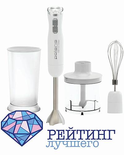 И в завершение нашего рейтинга погружной блендер PHB 1476 бренда Polaris. Представляет собой три в одном: блендер, миксер и измельчитель. Прибор обладает мощностью 1400 Вт – самая большая величина в нашем рейтинге. Такое значение наделяет прибор пятнадцатью скоростями, которые плавно переключаются между собой. При этом доступен и Turbo-режим, реализующий максимумы устройства. Управление механическое. Ножи Pro Blade из нержавейки изготовлены в особой форме, которая на двадцать процентов более результативно измельчает и смешивает даже твердые ингредиенты. Технология ProTect+ вдвойне защищает мотор от перегрева и перегрузки, что способствует его надежной и длительной работе. В комплект входят венчик для взбивания, стандартная блендерная насадка, которые сделаны из нержавейки, и чаша измельчителя с встроенными лезвиями и объемом пол-литра. Также в комплекте идет и мерный стакан вместительностью семьсот миллилитров. Покупатели оставляют положительные отзывы о товаре. Хвалят его за тихую работу, удобные клавиши включения-выключения и регулировку скоростей, большую мощность и наличие насадок.
