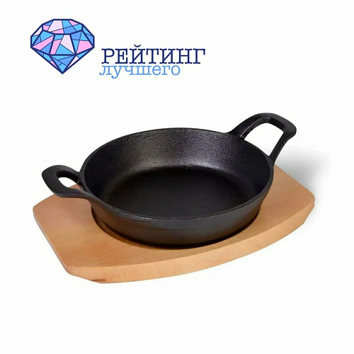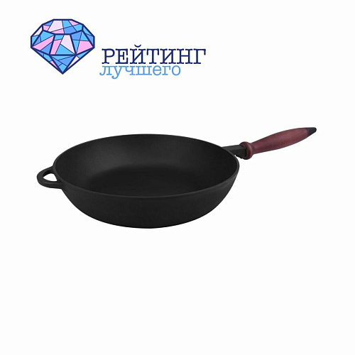- Классическая. Имеет круглую форму с ручкой, обычно литой. Диаметр такого варианта может быть разным, как правило, достигает не более 28 см. Может быть изготовлена полностью из чугуна или покрыта эмалью. Подходит для приготовления большинства блюд. В зависимости от температурного режима, на ней можно жарить, тушить или готовить в режиме томления. Такая форма чугунной сковородки имеет большую популярность среди всех хозяек. В комплекте с ней может идти крышка. Однако же если её нет в комплекте, подойдёт любая стандартная.