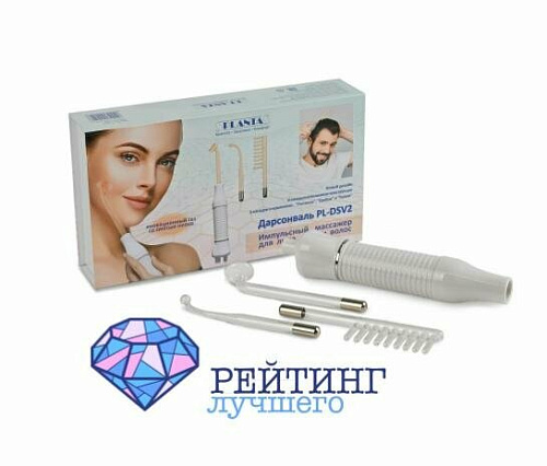 Начнем наш рейтинг с модели дарсонваль бренда Goody. Поставляется он в стильной черной коробке с магнитной крышкой, в которой удобно хранить входящие в комплект четыре аксессуара. Кроме того, в комплект входят подробные инструкции с описанием процедур и схемами применения. Лопатка подойдет для обработки больших участков кожного покрова, что актуально для желающих избавиться от целлюлита. Площадь контакта составляет более трех см2. Точка оказывает точечное воздействие, поэтому хорошо подойдет для обработки проблемной кожи и прыщей. Ее площадь составляет менее 0,5 см2. Тарелка – аксессуар для любого участка лица и тела с площадью контакта более четырех см2. И, наконец, гребень для лечения и стимуляции волосяных луковиц, что пригодится при лечении облысения. С ее помощью ваши волосы станут блестящими, живыми. Площадь контакта составляет более семи квадратных сантиметра. Запатентованная система стабилизации создает луч правильной формы электрического импульса с помощью точного диммера - регулятора, что позволяет комфортно проводить процедуру дарсонвализации в домашних условиях для лечения и предупреждения гайморитов, перхоти, выпадения волос, целлюлита, варикоза, псориаза и иных высыпаний. Смена насадок осуществляется быстро за счет системы «Quick – click», изготовлены они из безопасного медицинского стекла, имеют высокопроводящие контакты, выдаваемая мощность составляет десять ватт. Прибор обладает массажным эффектом, при этом ее и нагревается, что дополнительно расслабит мышцы. Ультрафиолетовое излучение создаст небольшое количество озона и окислов азота, которые обладают бактерицидными действиями, что усилит эффект дарсонвализации на воспаленных участках. Покупатели оставляют положительные отзывы о товаре. Хвалят его за эффективность, разглаживание морщин, подтягивание контуров лица, улучшение состояния кожи и волос, удобство применения и стильную коробку для хранения, которую не стыдно купить и в подарок. Отмечают, что для лучших результатов следует применять его регулярно.