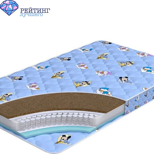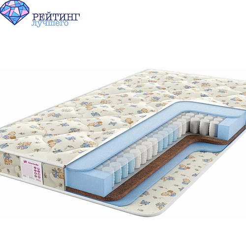 В дополнение к безопасному составу, особенно подходящему для защиты от аллергии, этот матрас оснащен чехлом из долговечного трикотажа. Несмотря на то, что в его основе находятся пружины, он удобен в использовании и не подвержен усадке. Он имеет небольшой вес, что дает возможность переносить его с места на место, и выпускается в нескольких размерах. Поэтому если ваш малыш спит на односпальной или полутораспальной кровати, вы без проблем подберете оптимальный вариант. Толщина 15 см может показаться небольшой, но для ребенка этого вполне достаточно. Обе стороны здесь имеют умеренную жесткость, что обусловлено равномерному распределению высокоэластичной пены и натуральной кокосовой койры.