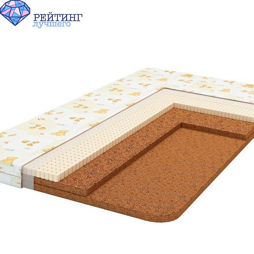 Эта модель попала в наш список благодаря тому, что предлагает два уровня жесткости: среднюю и выше средней. Вы можете положить ее той стороной, какой считаете лучше. В составе здесь присутствует латекс и кокосовое волокно, а потому матрас не просядет со временем и не вызовет аллергической реакции. Он будет способствовать хорошей циркуляции воздуха и поддержит позвоночник ребенка в правильном положении. Dimax Изюминка защищен от клещей, обработан антибактериальными средствами и не подвержен появлению плесени. И он обладает отличным соотношением цены и качества, а потому хорошо подходит для детской кроватки. Его высота составляет 9 см, а срок годности легко превышает 10 лет.