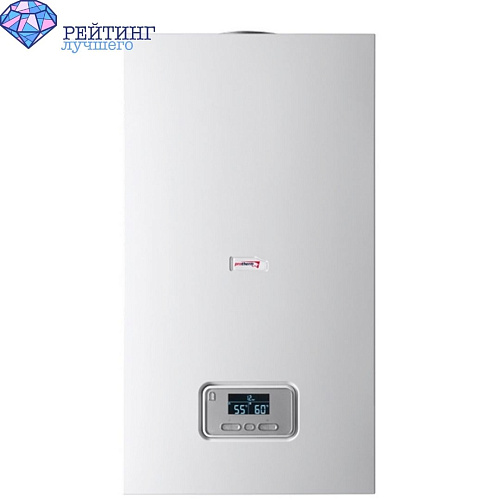 С мощностью 24 кВт этот продукт готов удовлетворить все ваши потребности в отоплении, так как имеет КПД 91,4% и рассчитан на обогрев пространств площадью до 240 градусов. Он имеет настенную установку, электронный блок управления с поддержкой пульта ДУ и стальной теплообменник, обещающий большой срок службы. Эта модель в целом не выделяется на фоне вышеописанных устройств, потому как предлагает все те же характеристики и обладает высоким качеством. Она проводит диагностику в автоматическом режиме, не боится перегрева, замерзания и блокировку насоса и быстро реагирует на погасание пламени или на отсутствие тяги. Здесь предусмотрен циркуляционный насос и летний режим и возможна производительность 14 литров воды в минуту при температуре 25 градусов.
