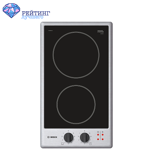 Есть множество электрических варочных панелей разных марок, но бренд Bosch предлагает один из своих лучших продуктов на сегодняшний день. Bosch PKE345CA1 выполнена в черном цвете и покрыта стеклокерамикой, которая способствует быстрому нагреву 2 конфорочных зон. Она проста в использовании, быстра и экономична, а за счет своих компактных размеров может устанавливаться даже в ограниченных пространствах. Так же как и предыдущая модель, это устройство не требует монтажа в столешнице и подходит для приготовления различных блюд, начиная от молочных каш и заканчивая супами. Если говорить о безопасности, то тут присутствует индикатор остаточного тепла, а значит вы не рискуете обжечься о рабочую поверхность после того, как снимите кастрюлю с зоны нагрева. Конечно, Bosch PKE345CA1 не может распознавать наличие посуды и не снабжена функцией автозакипания, однако может предложить 9 уровней мощности, чтобы вы могли регулировать силу нагрева в зависимости от вида приготавливаемой пищи.