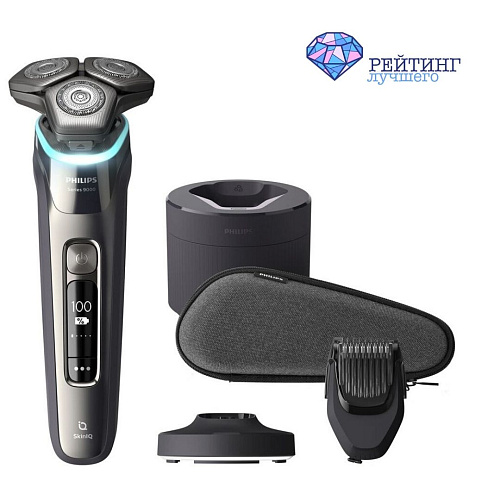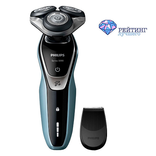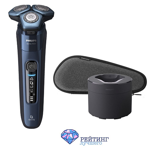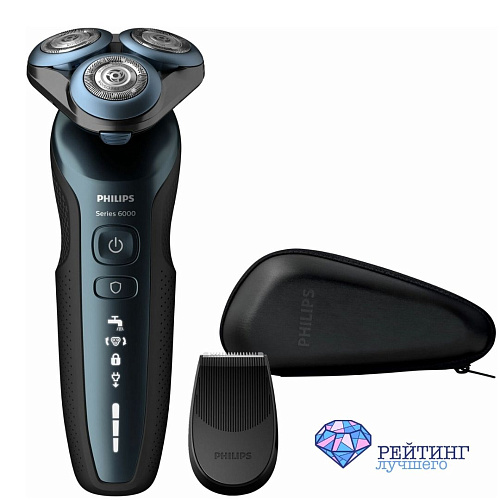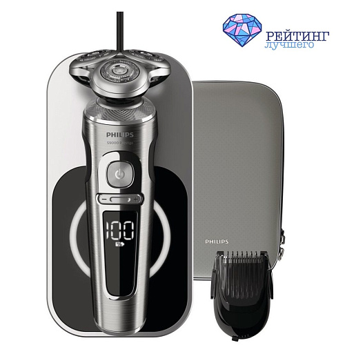 Модель с роторной бритвенной системой, которая имеет три решеточных диска, занимает почетное шестое место в рейтинге лучших электрических бритв. Под каждым диском по 24 самозатачивающихся лезвия, которые необходимо менять раз в 2 года. Бритва оснащена технологией Skin IQ. Имеет специальное покрытие, благодаря которому осуществляется гладкое скольжение, не раздражая кожу. Электробритва подключается к мобильному приложению Philips Groom Tribe. С помощью него вы можете отслеживать состояние кожи, щетины, оттачивать технику бритья. У конструкции литий-ионный аккумулятор, который обеспечивает автономную работу приблизительно на месяц (60 минут). Также бритва имеет функцию быстрой зарядки, которая позволяет зарядить устройство для одного цикла бритья. Согласно заявлениям производителя, кожа должна привыкнуть к бритве в течении 2-3 недель. В комплекте с бритвой идет чехол для транспортировки, док-станция для зарядки, контейнер с моющим средством, насадка-стайлер для бороды. На рукоятке бритвы располагается дисплей с индикаторами - зарядки, остаточной зарядки, разрядки, степени зарядки и очистки.