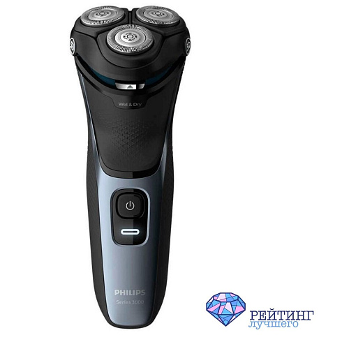 На четвертой строчке рейтинга расположилась модель S3133 Series 3000 с эргономичной прорезиненной ручкой для удобства использования. Обеспечивает надежный хват без выскальзывания. Вес девайса 180 г. В комплекте идет защитная крышка, которая поддерживает чистоту головок между сеансами бритья. О разрядке батареи своевременно сообщает одно уровневый индикатор состояния аккумулятора. Работает бритва исключительно от аккумулятора около 60 минут. Способы бритья: сухое и бритье с использованием средств для бритья. У бритвы 3 роторные головки, которые двигаются в 5 направлениях для точного повторения ваших контуров лица. Это обеспечивает тесный контакт с кожей для эффективного бритья. Одним касанием открывается верхняя часть для чистки. Максимальная гладкость обеспечивается при помощи 27 самозатачивающихся лезвий. В устройстве имеется высокоточный триммер для создания индивидуального стиля.
