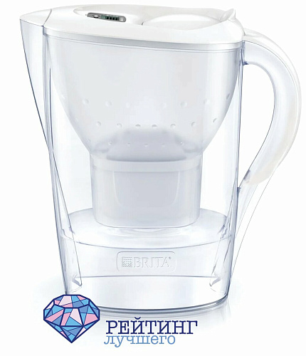 Фильтр – кувшин немецкого бренда BRITA Marella Memo MX+ 2.4 имеет белое оформление, которое подойдет для любой кухни. Благодаря своим компактным размерам вы сможете поместить графин в холодильник, чтобы у вас всегда была охлажденная чистая питьевая вода. Залив легко осуществлять даже одной рукой через клапан на крышке, которую не нужно будет снимать полностью. Удобный носик позволит аккуратно наполнить стакан или кружку, а также предотвратит попадание пыли. Как только наберется емкость вместимостью 1,4 л для нефильтрованной жидкости, нажмите кнопку «Старт», и тогда счетчик начнет отсчет срока службы фильтрующей составляющей, которой хватает на 300 л. Технология очистки избавит от примесей хлора и металлов, жесткости и прочих стандартных загрязнений. Корпус сделан из прочного пищевого пластика, способного долго сохранять хороший вид, и в состав которого не входит бисфенол А. Покупатели в целом положительно отзываются о товаре, выделяя его дизайн и эффективность фильтрации. Однако и отмечают, что через неделю использования эффективность чуть ухудшается, а с течением времени пластмассовый корпус начинает мутнеть.
