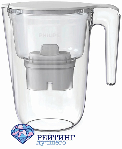 Известный бренд бытовой техники имеет в своей линейке и такие простые средства для очистки, как фильтр – кувшин Philips AWP2937/51 3.4. Такой фильтр – кувшин снабжен цифровым таймером, который подскажет, что пора произвести замену фильтрующего модуля. Обычно, это происходит не ранее, чем через три месяца, подходят модели AWP210 – 212. Получаемая жидкость вкусная, и она дешевле, нежели бы вы приобретали бутилированную. Из-за системы микрофильтрации, а также технологии Micro X-Clean вы будете получать фильтрат без свободного хлора, извести, которая способствует образованию накипи, примесей тяжелых металлов, а также механических примесей и взвесей, например, микропластика и ПФОКа. Крышка для заполнения чаши легко снимается, а носик на ней сконструирован так, чтобы внутрь не попала пыль. Воду, прошедшую фильтрацию со скоростью 0,3 л в минуту на AWP2937/51 3.4 можно заливать в бытовые приборы, например, увлажнители и мойки воздуха, что не повлечет образования известкового налета на их корпусах. Емкость имеет объем 3,4 л, при этом фильтрата может содержаться в ней до двух литров. Покупатели положительно отзываются о товаре, отмечая, что расходные материалы не везде есть в наличии и они дорогие. При этом хвалят его за лаконичный и красивый дизайн, который подойдет для любой кухни, высокую эффективность и качество получаемой воды в сравнении с покупной в бутылках.