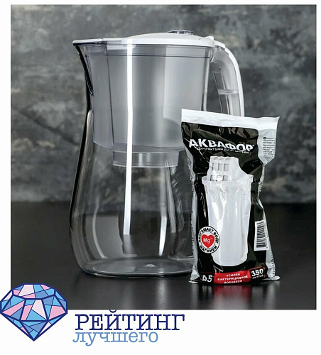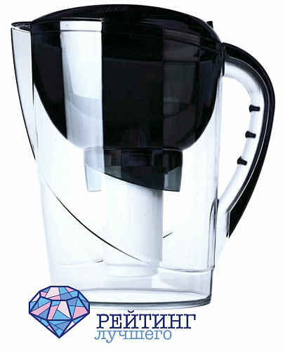 Активированный уголь, входящий в состав фильтрующего компонента, способен очищать от вредных органических веществ, свободного хлора, примесей железа и других тяжелых металлов. На выходе вы получаете жидкость со сниженной жесткостью, из-за чего резко снижается образование накипи на приборах, используемых в быту. Корпус вместимостью 4,2 л сделан из экологичного пластика, который безвреден для здоровья. Залив просто осуществить из - за наличия небольшого клапана на крышке. Там же располагается и удобный откидной носик, который препятствует смешению фильтрата и неочищенной жидкости. Одного фильтрующего модуля хватит до 350 л. Оформление кувшина повторяет графины из стекла, поэтому создаст дополнительный уют на кухне. На крышке расположен счетчик периода использования фильтра, который сообщит, когда пора его сменить. В комплект входит модуль формата А5, обладающий антибактериальными свойствами, а на его смену вы можете купить А6, В5-В8. Покупатели высоко оценили товар. Отмечают, что он очень красивый и хорошо смотрится на кухонном гарнитуре. При этом у него высокая эффективность и скорость очистки.
