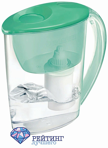 Комплект кувшина и сменного картриджа для укрепления вашего иммунитета. Эффект достигается за счет наличия ионов цинка и магния в комплектующих кассеты, ресурса которой хватит аж на триста пятьдесят литров. Кроме того, происходит и очищение от примесей, которые приводят к образованию накипи. Конечно, можно использовать любую доступную или понравившуюся вам кассету для очистки, совместимую с кувшинами бренда Барьер. Их герметичное резьбовое соединение не даст смешаться неочищенной жидкости с уже отфильтрованной. Еще одно преимущество таких фильтров - их экологичность: они сделаны из пищевого пластика, который можно сдавать в переработку, тем самым вы обережете природу от тонны пластика и сорока двух тысяч пластиковых бутылок. Приятный мятный цвет чаши для залива порадует глаз, находясь на кухонном гарнитуре. Объемом она один литр, а общий составляет два с половиной, которых достаточно для проведения чаепития в кругу семьи. Клапан для залива позволяет не открывать крышку, а осуществить все одной рукой. Размеры графина компактные, поэтому он не займет много места даже на небольшой кухне, и его можно поставить в холодильник. Вам доступно и фирменное приложение от бренда, которое напомнит о том, что пора заменить картридж и скажет, какой лучше купить на этот раз. Покупатели положительно отзываются о товаре, отмечая удобство использования и возможность установки любой фильтрующей системы.