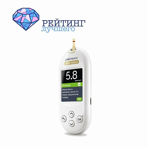 Небольшой портативный аппарат, который помогает контролировать уровень сахара в крови пациентам с любым типом диабета. Тестирование проводится путём забора крови из пальца или вены, данные фиксируются по плазме. Одним из преимуществ этого прибора является удобная конструкция, которая хорошо лежит в руке, независимо от её размера. Помимо этого, имеется специальный функционал, который самостоятельно напоминает о времени диагностики, а также экономит заряд батареек. Хорошая чёткость дисплея и его размер способствует удобству использования данного прибора. Также в нём есть встроенная память на 480 измерений, что удобно для самоконтроля или ведения дневника.