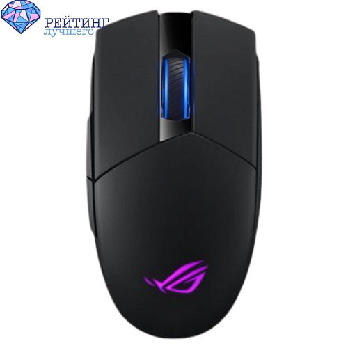 Следующую позицию в нашем рейтинге занимает современная модель геймерской беспроводной мыши – ASUS ROG Strix Impact ll Wireless. Разрешение оптического светодиодного сенсора – 16000 dpi, есть четыре режима разной чувствительности сенсора. Способ подключения – USB или радиоканал 2.4 ГГц. Размер компактный, форма – эргономичная, что обеспечивает максимальный комфорт в процессе игры. Вес игровой мыши составляет 93 г. Ножки из тефлона позволяют мыши исправно работать на любых поверхностях. Эта модель имеет полупрозрачный корпус и двухзонную подсветку – логотип и колёсико. Тип питания – литий-ионный аккумулятор. Время автономной работы – 89 ч. при выключенной подсветке и 48 ч. – при включённой. Особенностью рассматриваемой модели является наличие слотов для заменяемых переключателей.
