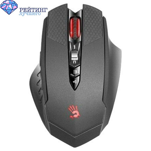 В завершении рейтинга – геймерская беспроводная мышь Bloody Warrior RT7. Разрешение светодиодного оптического сенсора – 4000 dpi. Тип питания – собственный литий-ионный аккумулятор. Два способа подключения – USB и радиоканал. Форма предусмотрена только для правой руки.