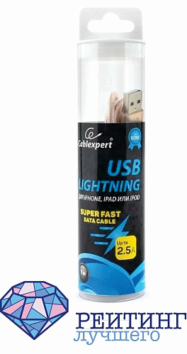 Бренд Cablexpert основан в 1997 году в Нидерландах и за почти тридцатилетний период распространился по всей Европе. Производственные мощности расположены в Китае, что снижает цену на конечный товар, а склады находятся в европейской части для быстрой доставки покупателям. Все товары бренда сертифицированы по стандартам QC. Кабель CC-U-APUSB01 изготовлен в золотистом цвете, покрыт тканевой оплеткой, поэтому защищен от заломов и перегибов. Подключение к адаптеру питания или к ПК осуществляется через разъем USB. Максимальное значение тока, пропускаемое проводом, составляет 2,5 А. Длина составляет один метр, что стандартно для шнурков. Отзывы на товар положительные, покупатели отмечают гармоничное сочетание цвета шнура и iPhone и качество выполнения. Однако есть и замечания, что срок службы не превысил и месяца.