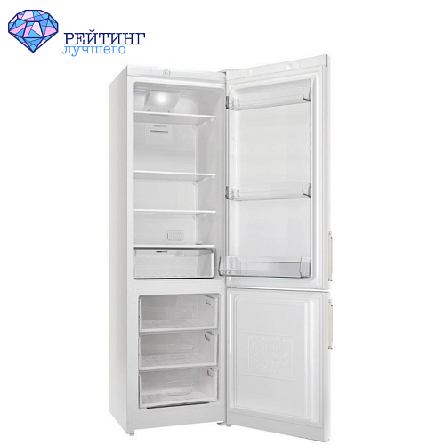 Stinol STN 200 объемом 359 литров включает в себя очень просторный нижний морозильный ящик для хранения пищевых запасов, а также 4 стеклянные полки, способные выдержать большие нагрузки. Он выполнен в классическом дизайне и имеет скрытые ручки, чтобы вы могли вписать его в абсолютно любое пространство. Эта модель не заставит вас испытывать дискомфорт, даже находясь близко к спальным комнатам, так как издает шум в пределах 39 дБ, и положительно скажется на энергопотреблении, поскольку относится к классу А энергопотребления. Хорошо и то, что она снабжена функцией No Frost, которая позволяет избежать ручной разморозки и не образует наледи на продуктах, даже если они расположены вплотную к стенкам.
