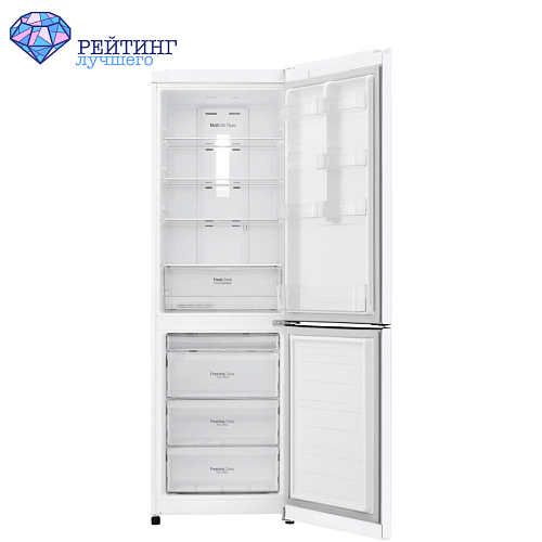 LG GA-B419 SDJL занял заслуженное 9 место в нашем топе благодаря качественным материалам и большому объему. Его размер идеально подходит для установки в небольших кухнях, а общая вместимость 302 литра позволяет расположить в нем все, что нужно. Он предназначен для хорошей энергоэффективности, так как относится к классу А+, и издает шум в пределах 39 дБ, что делает его практически бесшумным. Внутри этой модели находятся прочные стеклянные полки, зона свежести и три выдвижных ящика в морозильном отсеке, поэтому вам не придется переживать за свежесть мясных продуктов, полуфабрикатов, зелени, овощей и фруктов. Внутреннее освещение позволяет быстро находить продукты, сокращая время открытия двери, а система No Frost избавляет вас от необходимости ручной разморозки. Обе двери холодильника могут быть подвешены, а регулируемые ножки помогут ему адаптироваться к неровным поверхностям.