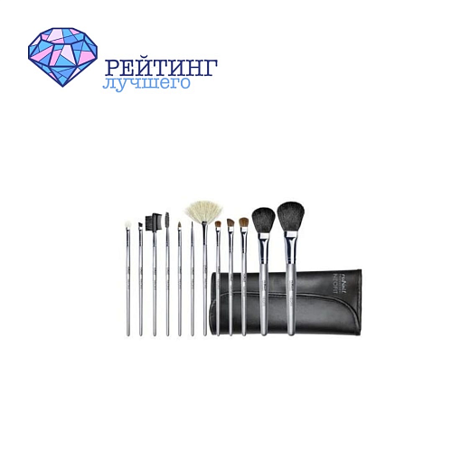 Кисти из натурального ворса отличаются своей мягкостью и плотностью. В наборе есть различные модели для прорисовки бровей и выведения четкого контура стрелок. Всего в кистевом наборчике есть 12 черно-серебристых кисточек. Отличается представленная модель наличие в комплекте щеточки для ресниц. Она поможет вам разделить слипшиеся волоски, а также подчеркнет ваши глаза, сделав их более выразительными. Универсальные кисточки хоть и можно отнести к профессиональным представителям, но количество не всегда отвечает за широкий профиль различного макияжа. Представленные кисти больше для ежедневного, легкого макияжа. Кисти для различных зон вашего лица скроют все изъяны и подчеркнут ваши достоинства. Пластиковые ручки удобны тем, что не занимают много места, имеют легкий вес, и довольно прочные. Также такой материал прослужит вам дольше деревянных. Он не разбухнет от неправильного ухода и не покроется плесенью.