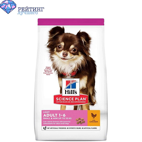 5. Hill's Science Plan Light для поддержания здорового веса, с курицей и рисом 1.5 кг (для мелких пород)