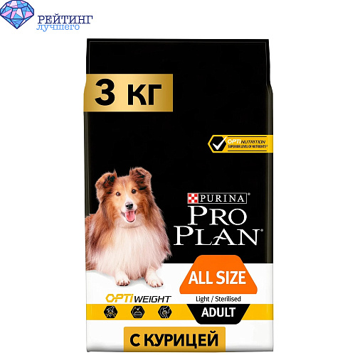 2. Pro Plan для склонных к избыточному весу или стерилизованных собак, курица