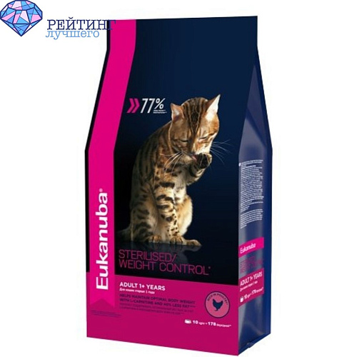 1. Лучший корм в соотношении цены и качества – для стерилизованных кошек Eukanuba с курицей.