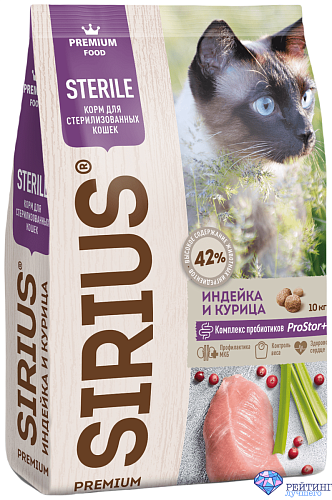 1. Для стерилизованных кошек Sirius Premium Sterile с индейкой и курицей