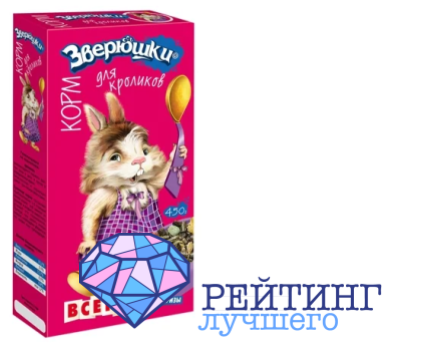 Корм для кроликов Зверюшки содержит компоненты, нужные маленькому пушистику для здоровья и активности. Производитель гарантирует показатели в 15,1% белка для строительства тканей организма, 3,5% жиров для сияющей и мягкой шерсти и кожи, 15,7% клетчатки для комфортного пищеварения. В продаже доступны упаковки весом в четыреста пятьдесят граммов, пять и пятнадцать килограммов, что очень удобно, если ваш кролик полюбит Зверюшки купить сразу большую пачку. Рекомендуется при переводе питомца на новый вид еды смешивать ее со старой с постепенным увеличением количества новой до полного замещения. Частицы с травой, полезные и питательные семечки, плющенный горох, ячмень и кукуруза в виде хлопьев, хрустящие лакомства, вкусные овощи, зелень и фрукты, витаминно – минеральный комплекс. Однако это не исключает питание кроля свежим сеном в нужном ему количестве, только что из – под ножа кусочками фруктов, овощей, зелени или срезанными веточками молодых деревьев. Суточная норма для взрослой особи составляет от трех до пяти столовых ложек гранул, которые нужно разделить на два – три приема в день, или на три – четыре в случае беременной или кормящей крольчихи. Хозяева ушастых оставляют положительные отзывы о товаре, выделяя в качестве достоинств его хорошую рецептуру, наличие не только травы, но и кусочков фруктов и то, что питомцам очень нравится кушать Зверюшки.