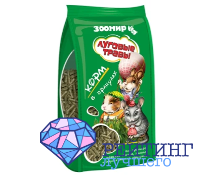 Луговые травы можно купить в упаковке на полкилограмма, восемьсот граммов, пять и пятнадцать килограммов. Такая широкая фасовка удобна в случае, если ушастику понравится питание, то можно купить большой мешок. В рецептуру включены люцерна, клевер, одуванчик, крапива и другие травы, растущие на лугах. Кроме них входят семена злаковых растений, мелисса, витаминно – минеральный комплекс, про – и пребиотик и энтеросорбент. Входящие в состав компоненты способствуют правильному пищеварению, поглощению и удалению вредных веществ из организма, поддержке здоровой микрофлоры кишечника. Производитель гарантирует значения белков 12%, жиров 3,5%, клетчатки 14,5%. Помимо кроликов, им можно кормить морских свинок, шиншилл, дегу и других грызунов, что удобно при наличии нескольких грызунов дома. Луговые травы особенно рекомендуется применять в осенне – зимний период для полного обеспечения питомцев нужными для его здоровья веществами. Жесткая структура частиц способствует стачиванию в равномерной степени постоянно растущих зубов. Хозяева грызунов высоко оценили товар, в качестве достоинств выделяя хорошее наполнение, отсутствие злаковых компонентов, хорошие размеры частиц и разные фасовки.