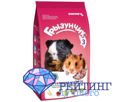 Грызунчик 3 Фруктовое ассорти представлен для продажи в упаковке на двести граммов. Он предназначен для кормления не только кролей, но и шиншилл, хомяков, морских свинок, мышей, крыс, дегу и белок, поэтому если у вас есть еще грызуны в качестве домашних животных, то этот корм можно будет давать и им. Грызунчик 3 Фруктовое ассорти имеет привлекательный вкус и хрустящую структуру, чем нравится грызунам. Удобная форма и размер частиц не вызовет трудностей при питании. В рецептуру входят пшеница, ячмень, горох, сушеные яблоки, груши, абрикосы, минеральные вещества, пребиотики и витамины. Все входящие в состав компоненты способствуют правильному обмену веществ, красивой густой шерсти и здоровой коже, нормальной микрофлоре кишечника. Рекомендации по переводу на новую еду остаются прежними: переходить нужно постепенно, увеличивая в смеси со старым кормом долю нового до полного замещения. Производитель гарантирует следующие значения пищевой ценности: 14,5% белков, 2,9% жиров, 5,1% клетчатки. Грызунчик 3 Фруктовое ассорти хоть и представляет собой полнорационное лакомство, все же его нужно комбинировать с естественной едой кролей, такой как сено, свежие зелень и овощи. Хозяева пушистых питомцев высоко оценили товар, оставляя о нем положительные отзывы. Хвалят его за небольшие размеры гранул, качество и то, что ушастикам очень нравится Грызунчик 3.