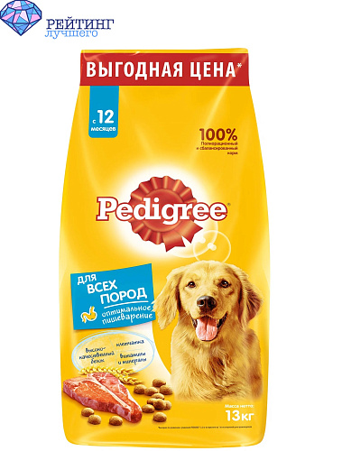 - Pedigree - принадлежит к одному из самых популярных брендов кормов для собак. Его продукция отличается лучшим соотношением цены и качества.