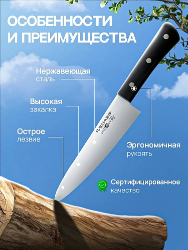 длина лезвия 20 см — удобно работать с разными продуктами: от овощей до мяса;