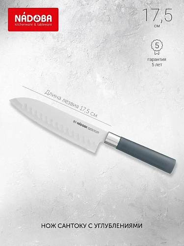 Нож Сантоку NADOBA Haruto — словно верный самурайский клинок в мире кухонных баталий: он готов и тонко нарезать, и нашинковать, и порубить — без лишнего пафоса, но с завидным мастерством. Лезвие длиной 17,5 см из нержавеющей стали с пятигранным профилем держит удар и рез так, будто знает секрет вековой закалки. Углубления на клинке создают воздушные карманы — и продукты отстают от ножа с лёгкостью, словно не хотят задерживаться на пути кулинарного волшебства. А эргономичная пластиковая ручка лежит в ладони надёжно, как старый дружеский локоть, — не скользит и не утомляет даже в долгой схватке с горами овощей.