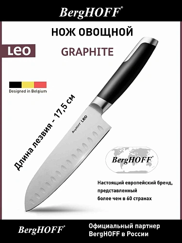 Нож Santoku от BergHOFF (линейка Graphite) — словно многорукий кулинарный бог: одним движением и нашинкует, и раздавит чеснок, и аккуратно перебросит нарезку в кастрюлю. Широкое лезвие длиной 17,5 см с прямым краем работает чётко, как метроном, — будь то тонкая нарезка овощей или энергичное шинковка капусты. Заточка вручную добавляет ножу особый шарм: чувствуется, что над ним потрудились с душой, а не просто пропустили через конвейер. Рукоятка, где пластик подружился со сталью, лежит в руке надёжно, будто старый приятель за локоть держит, — не скользит, не выскальзывает, даже если пальцы чуть влажные. Вес в 340 г даёт ощущение солидности, но не перегружает кисть — с таким помощником готовка превращается в лёгкий танец, а не в марафон с препятствиями.