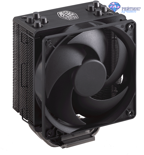 Cooler Master Hyper 212 Black Edition – это бюджетный кулер, оптимальное сочетание стоимости и эффективности работы. Подойдет тем, кто не любит переплачивать, соотношение ценника и достоинств этого кулера хорошие. Он не создан для геймерских чипсетов, но удачно справляется с перегревом чипсетов среднего ценового сегмента. Наибольшая рассеиваемая мощность изделия достигает достойные 180 Вт. Продукт подходит для многих моделей процессоров, что делает из него востребованного и популярного участника рейтинга. Радиатор изготовлен из алюминиевых пластин, а еще есть четыре медные трубки-теплообменники. Вентилятор работает наиболее тихо, что отмечают многие владельцы кулера. Подшипник скольжения не самый тихий среди прочих, однако производителю удалось снизить шумность до наименьшего значения. Скорость вращения варьируется от 650 до 2000 оборотов в минуту, возможна установка еще одного вентилятора. Время безотказной работы, по заверению производителя, составляет 160000 часов.