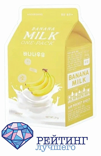 Стилизованная под упаковку молока упаковка тканевой маски APIEU привлечет внимание к себе. Внутри содержится двадцать один грамм эссенции, которая способна разгладить морщины, улучшить микрорельеф, нормализовать клеточный обмен за счет наличия в составе вытяжки из банана. Страна производитель – Корея. Как и все тканевые маски, APIEU применять просто: после умывания протереть лицо тоником, равномерно распределить ткань и оставить ее на пятнадцать – двадцать минут. После снятия аккуратно помассировать кожу, распределяя остатки средства, до полного впитывания.