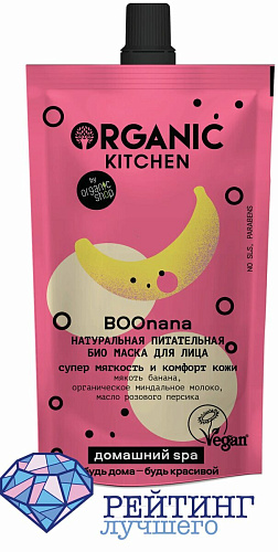 Мягкая упаковка ORGANIC KITCHEN питательная содержит сто миллилитров эссенции с экстрактом банана. Все компоненты, входящие в состав, не относятся к животной природе, поэтому ORGANIC KITCHEN можно применять веганам. В рецептуру также не входят парабены и SLS. Мякоть банана интенсивно питает кожные покровы, придавая им бархатистость и мягкость. Органическое миндальное молоко успокаивает и дарит приятное ощущение комфорта, а масло розового персика восстанавливает и насыщает влагой кожу, разглаживая морщины и увеличивая ее упругость.