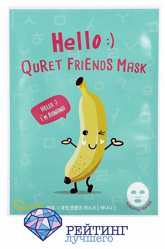 Еще одна тканевая маска с экстрактом банана QURET HELLO. Веселое оформление упаковки привлечет внимание, а состав позволит справиться с множеством неровностей и дефектов на коже. Ткань сделана из мягких и приятных на ощупь материалов, которые не будут оказывать раздражения. Она имеет специальные выемки и прорези, чтобы не задеть глаза и губы, и в точности повторить все изгибы и неровности поверхности. За счет них тканевая основа плотно прилегает, не давая средству растекаться и способствуя его полному впитыванию. Вытяжка из банана глубоко увлажняет кожные покровы, придавая им здоровый вид и естественное сияние.