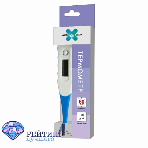Электронный термометр, предназначенный для подмышечного, орального и ректального измерения температуры. Измеряет в течение 60 секунд (3 минуты, если измеряете подмышкой), и запоминает только 1 измерение. Как и все электронный термометры имеет погрешность при измерении – она равно 0.1 градусу. Оснащен влагозащитным датчиком. А вот гибкого наконечника у этой модели нет, что, естественно, ей в минус. После бездействия термометр автоматически отключается. При покупке в комплекте идет футляр.