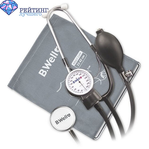 Этот тонометр обладает традиционными характеристиками хорошего измерителя артериального давления на руке: простотой и надежностью результатов. Он имеет металлический корпус и оснащен стетоскопом, а потому позволяет измерять давление и слушать легкие. Правда, для точной оценки состояния больного необходим хороший слух и опыт работы с подобными приборами. B.Well MED-62 подходит как домашнего, так и для профессионального использования в больницах и в машинах скорой помощи. Он идет в комплекте с чехлом и защищен от попадания пыли, которая может стать причиной погрешности.