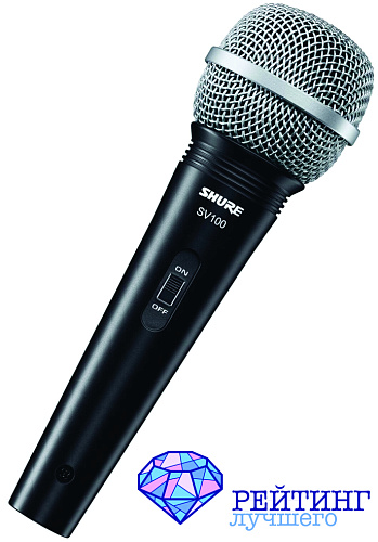 Следующего представителя бренда Shure мы отобрали в наш рейтинг как одну из лучших моделей микрофонов для караоке. Девайс имеет классический вид, конструкцию ручного типа, работает в диапазоне 50 Гц-15 кГц и предназначен для студий, концертов и вокального исполнения. Комплектация этого динамического оборудования включает в себя держатель с регулировкой для установки на стойку и чехол для хранения. Подключается устройство через стандартный выход XLR 3 pin (M), а питается он фантомно через кабель подключения. Металлический корпус снабжен кнопкой выключения, а внутри встроен фильтр НЧ. Характеристики: чувствительность 0,1 мВ/Па, выходное сопротивление 150 Ом.