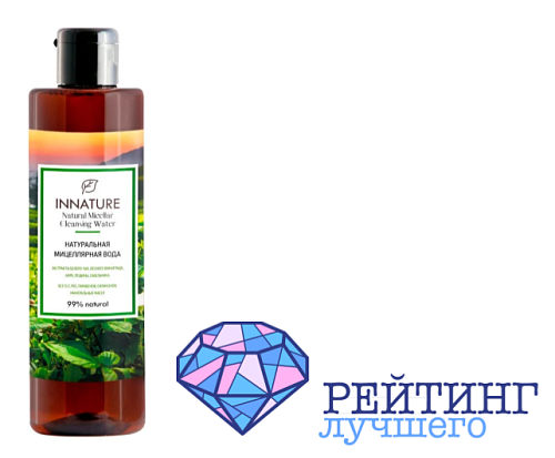 Все больше косметических и средств для ухода изготавливают на основе натуральных компонентов без добавления синтетических веществ. Так, бренд из России Innature имеет в своей линейке мицеллярную воду Natural Cleansing Water на основе экстрактов белого чая, лесного винограда, аира, лещины и сабельника. В состав не входят SLS, полиэтиленгликоль, парабены, силиконы, спирт, сульфаты и минеральные масла. Глицерин способствует удержанию влаги в эпидермисе и обладает смягчающим действием, аллантоин успокаивает очаги раздражения, защитит от чрезмерной сухости и сделает защитный барьер кожного покрова более крепким, а провитамин в5 и молочная кислота усилят тонизирующее и увлажняющее действие. Во флаконе находится большой объем средства – двести пятьдесят миллилитров, чего хватит на длительное время. Его можно использовать со всеми типами кожного покрова, а также для удаления декоративной косметики и загрязнений с век и губ. Заметим, чтобы не травмировать нежные участки на лице, рекомендовано нанести средство на ватный диск, приложить его на несколько секунд к очищаемому участку, и затем бережно удалить косметику, при этом остерегаться попадания в глаза. Покупатели оставляют положительные отзывы о товаре. Хвалят его за отсутствие резкого запаха, аллергии и раздражения после применения, и хорошую очищающую способность.