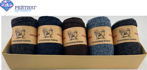Производитель RoeRue предлагает встретить зиму в лечебных термоносках с ослабленной резинкой в комплекте из 5 пар. В них используется натуральная собачья шерсть, которая позволяет надевать их при температурах до -30 °C и способна поглощать влагу, а также придает им дышащие и термоподдерживающие свойства. Для длительной и комфортной ходьбы применен способ особого переплетения нитей, что добавляет изделию RoeRue массажные свойства. За счет обработки безопасным для кожи дезинфицирующим составом носки имеют антибактериальные свойства, а также являются ароматизированными. Антисептические показатели достигаются за счет нитей с ионами серебра. Совокупность примененных материалов обеспечивают износостойкость, что позволяет сохранять их свойства и внешний вид после неоднократных стирок.