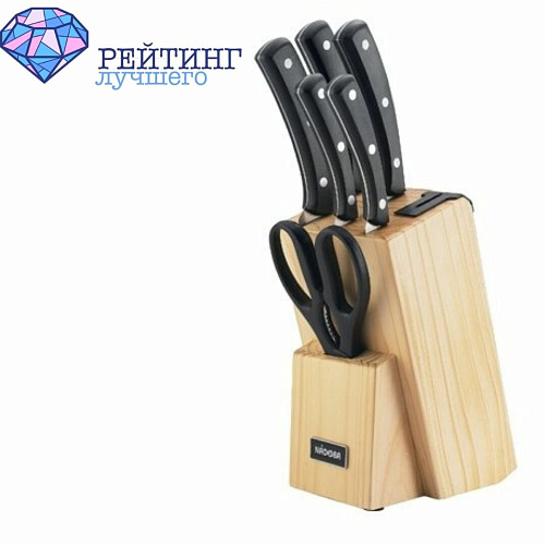 В премиальных наборах часто можно встретить дополнительные аксессуары. Такие, как: подставка, ножницы и мусат. Подставки изготавливают из различных пород дерева, каучука или пластмассы. Это приспособление удобно для хранения ножей. А в процессе готовке всегда знаешь, где спрятался тот или иной нож. Мусат - это профессиональное приспособление для быстрой заточки, что очень удобно в спешке приготовления большого количества блюд. Его не всегда добавляют в наборы, заменяя его ножеточкой.