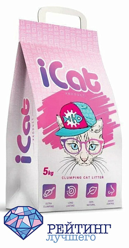 В стильную картонную упаковку с ручкой для удобной переноски помещен наполнитель для кошачьего туалета iCat комкующийся без запаха. В пачке находится пять килограммов средства. После попадания влаги на частицы, они слипаются в плотный комок, который удобно и просто убрать из лотка. На место утилизированного комка нужно подсыпать новую партию гранул, а не сменять весь поглощающий слой, что продлевает срок использования одной упаковки. Сделанный из стопроцентно натуральной глины наполнитель хорошо поглощает и неприятные запахи, оставляя свежесть в зоне установки туалета. Природное происхождение не вызовет аллергической реакции ни у животного, ни у людей. Частицы размерами один – два миллиметра со скругленными краями не колют лапы. Покупатели оставляют положительные отзывы о товаре. Хвалят его за отсутствие пыли, образование плотных комков, и что кошки не растаскивают его по всему дому.