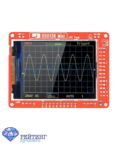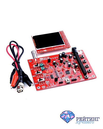 Представленная на этой позиции модель китайского производителя интересна тем, что это идеальный вариант для новичков в сфере электроники. Помимо приобретения полезного опыта в процессе сборки устройства, вы также получаете прибор, обладающий довольно хорошими рабочими характеристиками. Диапазон его полосы пропускания – 0-200 кГц. Скорость оцифровки составляет 1 Мвыб/с. Прибор оснащён подсвечиваемым цветным дисплеем, USB-портом для подключения к персональному компьютеру. С помощью клавиш возможно переключение между несколькими режимами чувствительности. Этот цифровой портативный осциллограф отлично подойдёт для измерения и анализа многих электронных сигналов, помимо высокочастотных. Ещё один плюс в копилку данной модели – это доступность в ценовом аспекте.