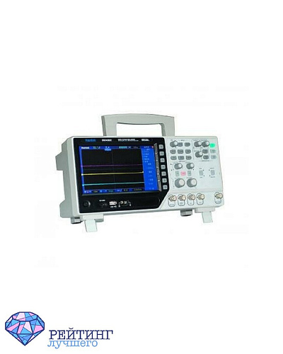 Эта модель цифрового планшетного устройства на два канала и с полосой пропускания, равной 100 МГц, – отличный вариант для тех, кому необходимо широкое поле для деятельности. Громкое заявление, но оно обосновано возможностью работы прибора в одном из двенадцати режимов на выбор. Многие параметры вы сможете настроить вручную, исходя из ваших индивидуальных целей работы. Осциллограф оснащён большим семидюймовым сенсорным цветным дисплеем, обеспечивающим чёткое качество снимков. Возможен как стационарный, так и портативный вариант использования прибора. Однако планшетная форма – это далеко не то же самое, что карманная. Этот осциллограф имеет весьма приличную толщину из-за углубления для подставки. Подставка позволяет работать на устройстве под углом в 45 градусов. Тип питания устройства – литейная батарея, но это же время присутствует USB-порт для зарядки и подключения к ПК. Достоинством модели является возможность использовать сразу два канала. Сохранённые сигнала вы сможете посмотреть на дисплее устройства или через подключённый компьютер.