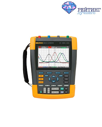 Почётное пятое место в рейтинге занимает инновационная модель от американского производителя Fluke. Это осциллограф-мультиметр, оснащённый двумя каналами и коэффициентом полосы пропускания от 60 МГц до 200 МГц. Достоинство этого портативного электронного прибора заключается в его высокой универсальности. Благодаря соответствию важнейшим категориям электробезопасности, данную модель можно применять как внутри помещений, так и на улице в работе с напряжением до 1000 В. Частота дискретизации составляет 1,25 Гвыб/с. Память прибора позволяет хранить до 30-ти осциллограмм и до 9-ти снимков экрана. Полученную информацию вы сможете просматривать как на дисплее самого устройства, так и на мониторе ПК через специальное приложение. Для подключения к ПК осциллограф имеет USB-разъём. Заряжается прибор с помощью литий-ионного аккумулятора, а время автономной работы может достигать 48-ми часов. Ещё одной особенностью модели является наличие специального режима простого и быстрого подключения под названием Connect-and-View. Он автоматически задаёт подходящие параметры для каждого из сигналов.